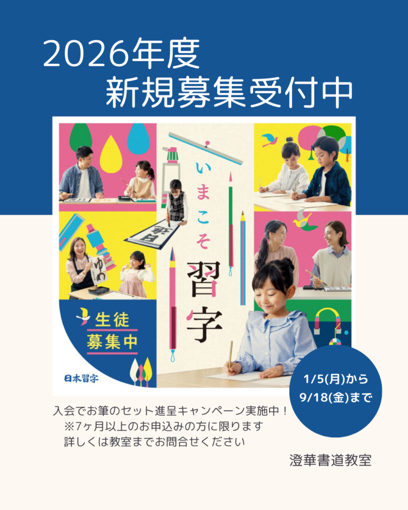 鈴鹿市の書道教室「澄華書道教室」では、2026年度の新規入会キャンペーンを実施いたします。